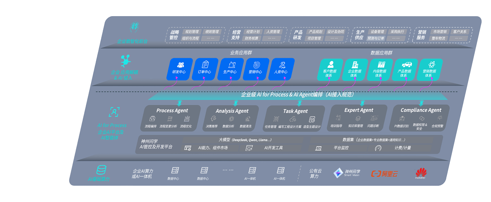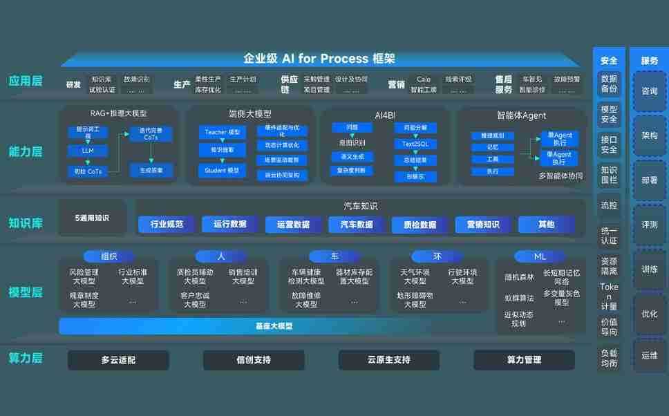 端到端的一站式AI工作空间深度融合了从企业战略规划到日常经营的全流程业务板块,,,,定向解决车企内部领域多、、、部门多、、、链条长、、场景碎片化等难题,,,,支持车企快速构建以AI为核心的生产力写作体系,,实现任务执行与AI能力的无缝集成与交互